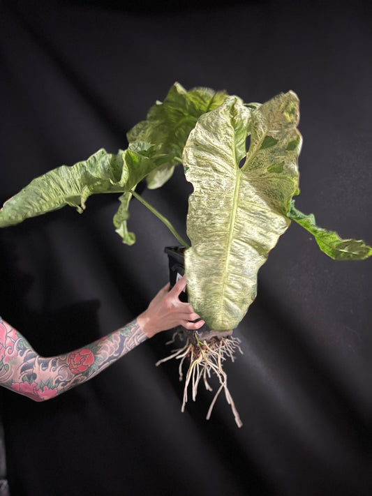 Anthurium (Red Crystallinum x NSE Portillae) x Variegated Papillilaminum X-One F2